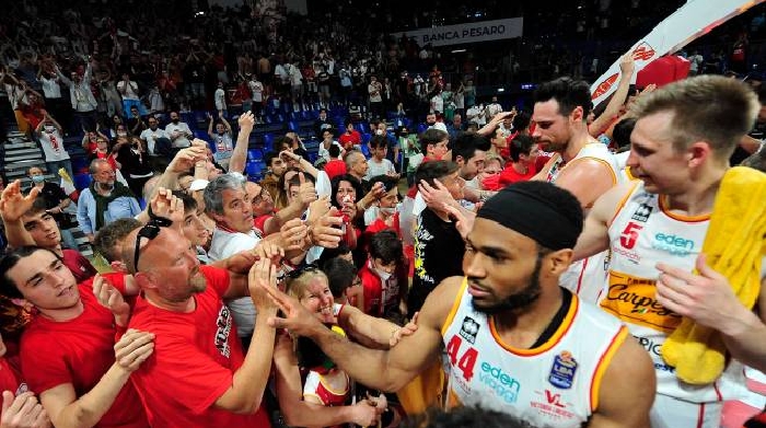 Dopo la prima storica sponsorizzazione di Benelli Moto per ben 38 anni lazienda di cucine pesarese Scavolini ha contraddistinto le storiche vittorie della società. Fondata nel 1946 la Victoria Libertas Pesaro nasce dalla fusione di due società cestistiche della città la Victoria e la Libertas. La Virtus Bologna ha conquistato le ultime sei sfide disputate contro la Carpegna Prosciutto Pesaro.